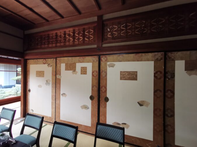 襖のデザインは伝統的な扇面散らしに一工夫が加えられた