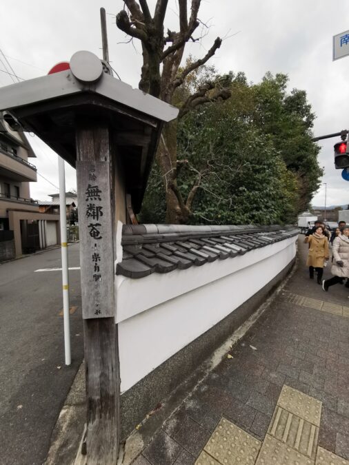 敷地がカーブし無鄰菴の築地塀も